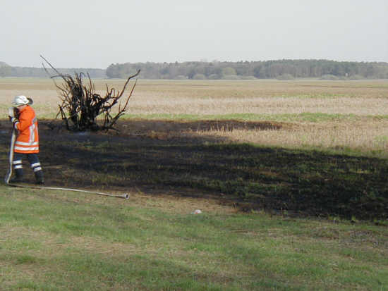 Ostermontag, den 21.04.03, wurden die Kameraden der Freiwilligen Feuerwehr Bleckede um 17.40 Uhr alarmiert. Im Elbweg in Bleckede brannte eine Fläche von ca. 200 m2. Auf der anderen Straßenseite war zusätzlich noch ein Böschungsbrand, bei dem fünf Kopfweiden in Mitleidenschaft gezogen wurden.