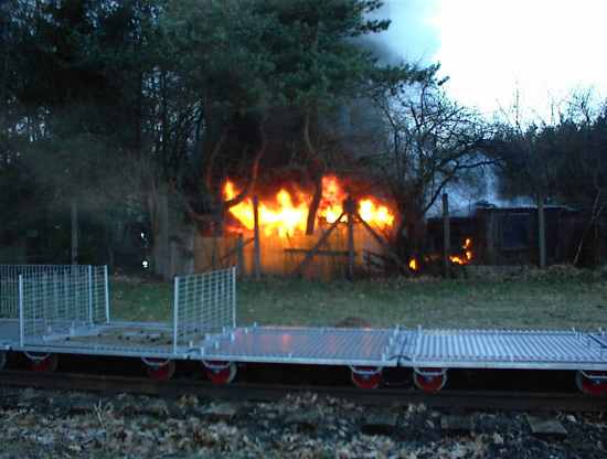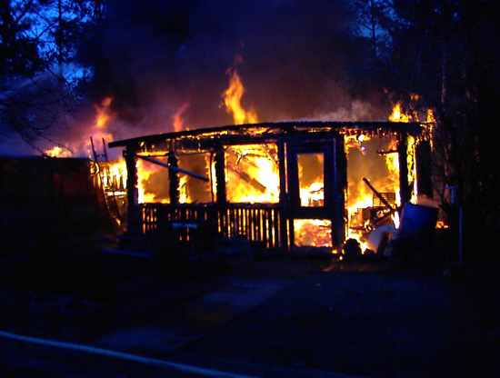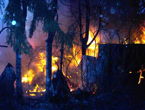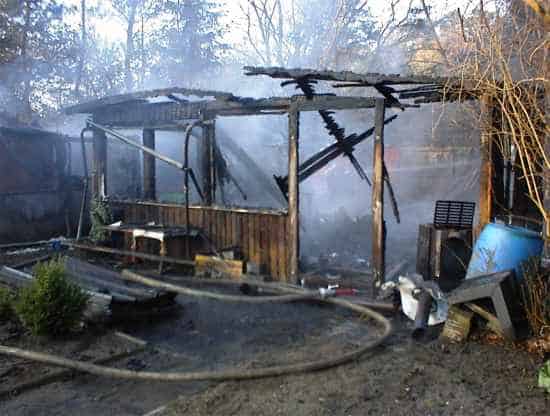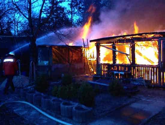 Auf den Bilder ist die Gartenlaube zu sehen die schon in Vollbrand steht.