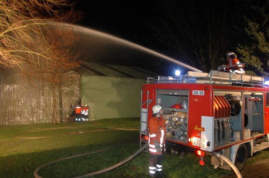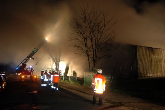 Um 2.55 Uhr wurden die ersten Bleckeder Feuerwehrleute aus ihren Betten gerufen, um zu einen Einsatz zu fahren. Schon auf dem Weg zum Feuerwehrgerätehaus konnte man den Feuerschein am schwarzen Nachthimmel sehen. Beim Eintreffen des ersten Fahrzeuges an der Einsatzstelle schlugen die Flammen schon aus dem Hallendach heraus. Das Dach selbst war an mehreren Stellen auf Grund der enormen Hitze eingestürzt. Der Einsatzleiter vor Ort ließ daraufhin sofort in Bleckede Vollalarm auslösen und alarmierte die Feuerwehren Breetze, Barskamp, Göddingen und Walmsburg dazu. Da die Lagerhalle schon ziemlich in Mitleidenschaft gezogen war, wurde die primäre Aufgabe, die Nebengebäude zu schützen. Es wurde von zwei Seiten das Brandobjekt gelöscht.