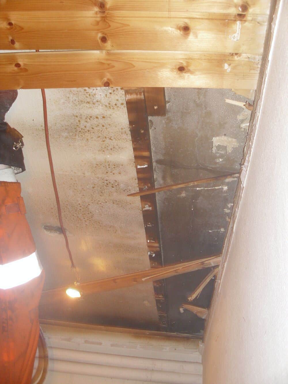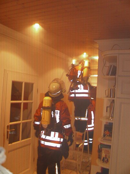 Hier konnte der Brand mit nur wenigen Litern Wasser gelöscht werden, während mit einem Hochdrucklüfter der giftige Brandrauch aus dem Gebäude geblasen wurde.
