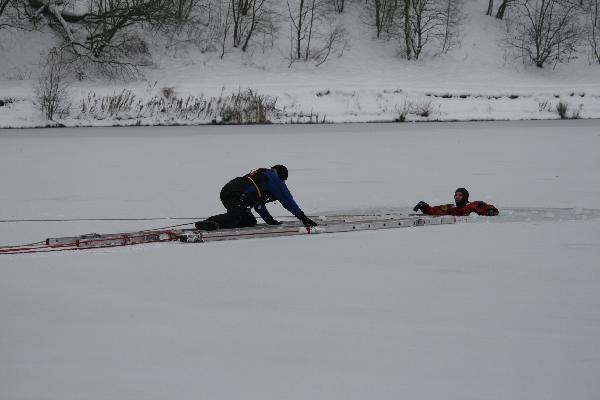 wurden nacheinander getestet. Initiator war die Lüneburger Feuerwehrtauchergruppe die mit ihren auch aus anderen Feuerwehren des Landkreises stammenden Mitgliedern bei einem Eisunfall alarmiert wird. Unterstützt von Mitgliedern der Sanitätsgruppe der Feuerwehr Lüneburg die nicht nur die Erstversorgung im Notfall sicherten, sondern bei den Rettungsaktionen tatkräftig mit weiteren Kameraden mit