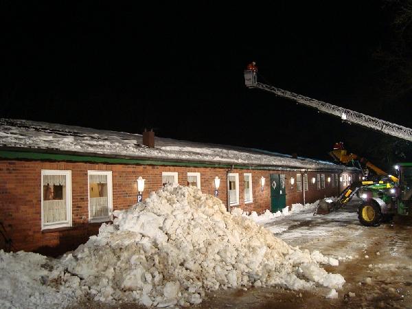 Droht Reithalle aufgrund Schneelast einzustürzen, Anforderung Drehleiter