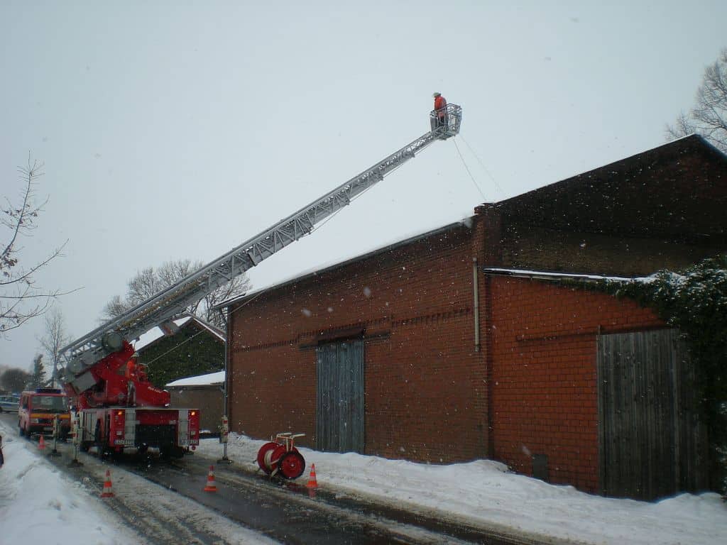 Droht Scheunendach unter Schneelast einzustürzen, Anforderung Drehleiter
