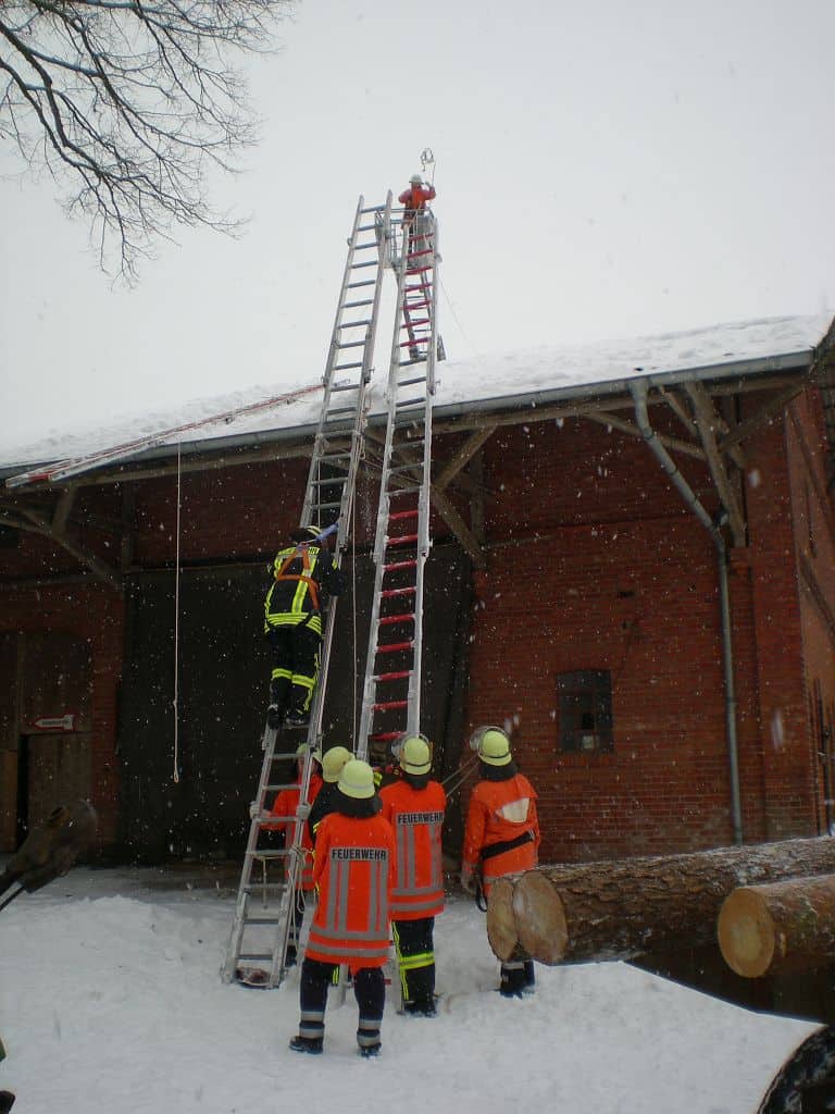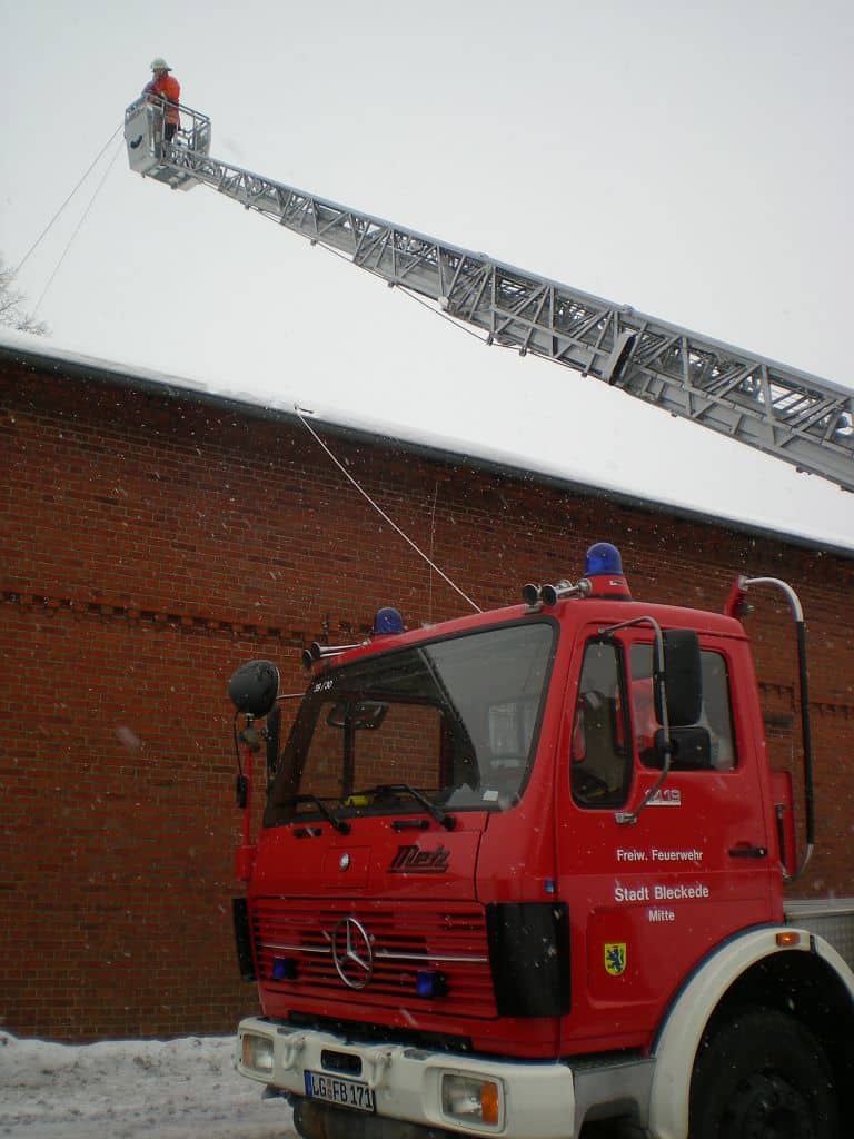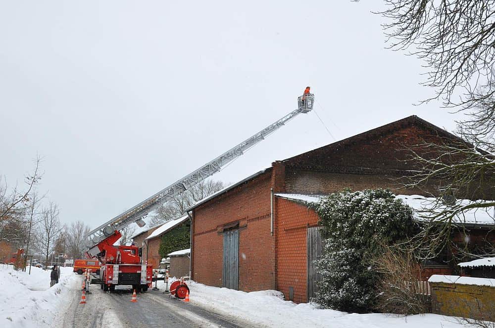 Droht Scheunendach unter Schneelast einzustürzen, Anforderung Drehleiter