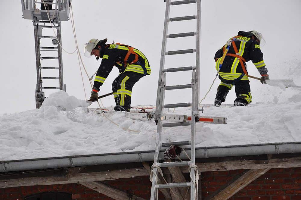 Der Winter macht nicht nur den Räumkräften zu schaffen. Auch die Feuerwehren werden immer öfter zu Notfällen gerufen. Am Samstagmorgen bemerkte eine Rullstorferin, dass sich das Scheunendach unter der Schneelast zu biegen begann und alarmierte die Feuerwehr. In dem Gebäude waren Wohnwagen und Sportboote untergebracht.