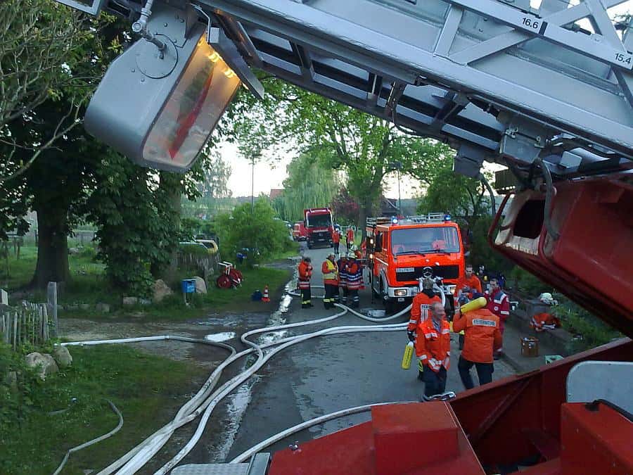Um die Dachhaut aufnehmen zu können und das Feuer besser von oben bekämpfen zu können, wurde die Drehleiter aus Bleckede, sowie der 3. Zug mit den Feuerwehren Boitze, Seedorf, Gienau, Lemgrabe / Dum-storf, ein RTW zur Eigensicherung der Einsatzkräfte und die IUK (Informations – und Kommunikationsgruppe) der Samtgemeinde nachalarmiert.
