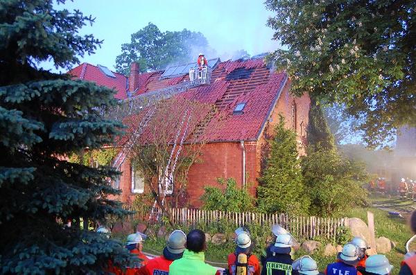 Beim Eintreffen der ersten Kräfte stand ein Teil des Dachstuhls bereits im Vollbrand. Es wurde sofort ein massiver Löschangriff aufgebaut. Die Wehren des 2. Zuges der Samtgemeindefeuerwehr Dahlenburg aus Nahrendorf, Pommoissel, Kovahl, Tosterglope und die Feuerwehr Dahlenburg wurden zuerst alarmiert.