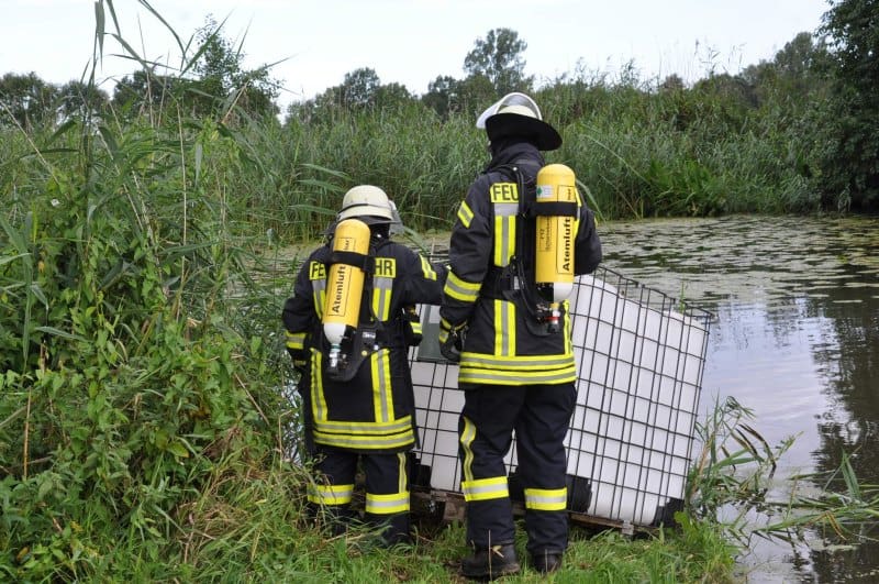 An der Einsatzstelle „Reihersee“ konnte der Zug „Gewässerschutz“ (Feuerwehr Hohnstorf/Elbe, Barum, Lüneburg und Kaarßen) seine Leistungsfähigkeit unter Beweis stellen. Mithilfe der Tauchergruppe aus Lüneburg konnten die versenkten Fässer geborgen, mit einer kleineren Ölsperre die verendeten Fische eingesammelt werden.