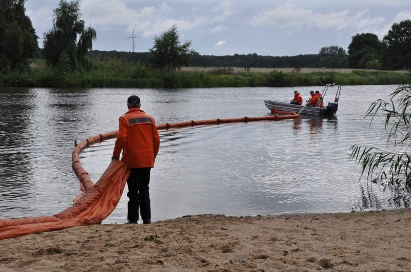 An der Einsatzstelle „Elbe“ in Artlenburg musste der Zug „Ölabwehr Elbe“, bestehend aus den Feuerwehren Artlenburg, Bleckede, Breetze, Neuhaus und Walmsburg eine Ölsperre aufbauen, um das auf dem Wasser befindliche Öl einzusammeln und zu entsorgen. Die Handhabung dieser großen Ölsperre erfordert zum einen viel Muskelkraft beim Ein- und Ausbringen, zum anderen erfordert die Handhabung des schweren Scherbrettes zur Stabilisierung der Ölsperre genaue Kenntnisse und auch Sicherheitsmaßnahmen.