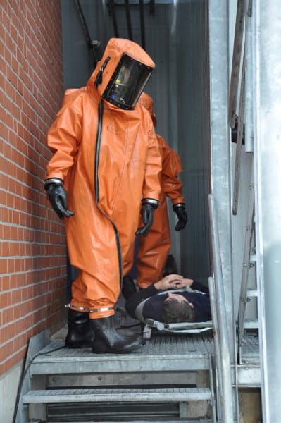 Die Einsatzstelle im Lüneburger Industriegebiet erforderte die meisten Einsatzkräfte. Hier wurden die Züge „Gefahrgut“ (Feuerwehr Erbstorf, Scharnebeck, Adendorf, Boltersen und Rullstorf) und „ABC-Abwehr“ (Feuerwehr Echem, Amelinghausen, Dahlenburg und Walmsburg) eingesetzt. Hier mussten Personen unter Vollschutzanzügen gerettet und dekontaminiert werden, eine schweißtreibende Arbeit, die höchste körperliche Fitness voraussetzt. Mit Messfahrzeugen kontrollierte der ABC-Zug, ob sich die Ammoniakwolke außerhalb des Einsatzgebietes verbreitet hatte, um evtl. Maßnahmen wie Warnungen der Bevölkerung zu veranlassen.