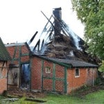 Ein Großfeuer in Barförde sorgte am späten Sonntagabend für ein enormes Kräfteaufgebot der Feuerwehren der Samtgemeinde Scharnebeck und der Stadt Bleckede. Um 20 Uhr ging in der Feuerwehreinsatzleitzentrale ein Notruf über einen Schuppenbrand ein, der auf das benachbarte Wohnhaus überspringen zu drohte. Die Hauseigentümerin befand sich zu diesem Zeitpunkt noch im Haus. Die ersten eintreffenden Einsatzkräfte bemerkten schnell, dass die Hauseigentümerin von den anliegenden Campern gerettet wurde und dass das Feuer bereits auf das Wohnhaus übergriff. Trotz der schnellen Löschangriffe konnten die Einsatzkräfte das Feuer nicht eindämmen. Nach kürzester Zeit stand der ganze reetgedeckte Dachstuhl in Flammen. Von allen Seiten versuchten die Einsatzkräfte, dass Feuer zu löschen. Durch die Gefahr, dass das Gebäude sowie der Schornstein einzustürzen drohte, war ein Abnehmen des Daches nicht möglich. So mussten die knapp 230 Kräfte der Feuerwehr nach fünfstündiger Löscharbeit die Arbeiten einstellen und auf den nächsten Tag hoffen. Bis auf die Feuerwehren Artlenburg und Brietlingen, die als Nachtwache vor Ort blieben um noch erreichbare Glutnester abzulöschen.