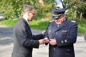Stadtbrandmeister Henning Banse betonte in seinen Grußworten die Notwendigkeit eines Tanklöschfahrzeuges in Breetze. Das Konzept mit mindestens drei TLF’s innerhalb der Stadtfeuerwehr stellt eine gute Sicherheit für die Bevölkerung dar. In seiner humorvollen Art überreichte er dann die Schlüssel für das Fahrzeug an Ortsbrandmeister Karl-Heinz Dahms mit den Worten „Da ist noch viel Platz für weitere Ausstattungsgegenstände vorhanden“.