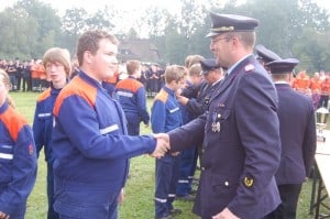 Die Jugendflamme der Stufe II haben am zweiten Septemberwochenende auf dem Kreisfeuerwehrtag in St.Dionys 70 Teilnehmer aus 18 Jugendfeuerwehren des Landkreises Lüneburg erworben. An fünf Stationen mussten die Nachwuchsbrandschützer ihr erworbenes Wissen unter Beweis stellen. Schlauchstafette, Standrohr setzen, Wasserwerfer zusammenbauen, Absicherung einer Einsatzstelle und Gerät vom Fahrzeug erklären waren die Aufgaben. Bestanden haben alle, wobei 10 Teilnehmer hier mit 50 Punkten die Höchstpunktzahl erreichten.