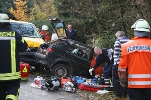 Türöffnung durch Feuerwehr mit hydraulischem Rettungsgerät