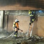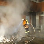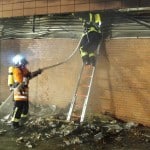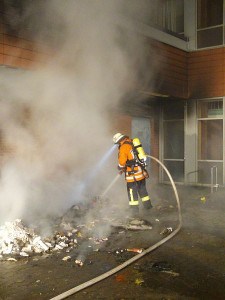 Foto 1: Brandbekämpfung an den Müllcontainern (Reste der Müllcontainer, Foto oben)