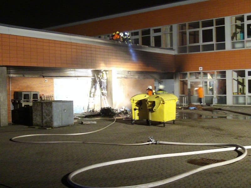 Erneut Müllcontainer in Vollbrand – Feuerwehr verhindert Übergreifen auf Schulgebäude