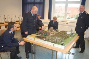 Einsatztaktik am Planspiel mit Lüneburgs stellvertretenden Kreisbrandmeister Matthias Kleps (links)