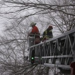 1/ 2: Sägearbeiten aus dem Korb der Drehleiter