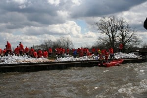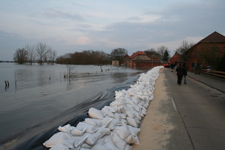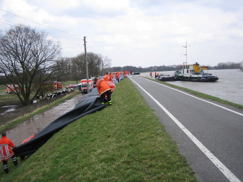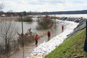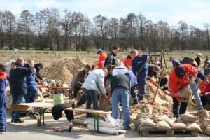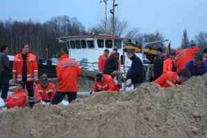 – Errichten und Verstärken von Notdeichen, Aufkardungen