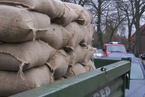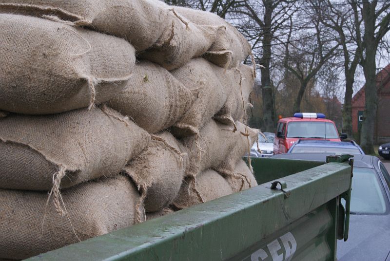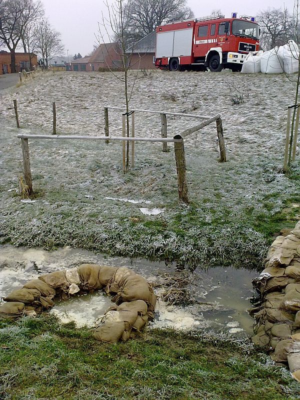 Sickerstelle an Deichfuss. Errichtung eines Fangedamms.