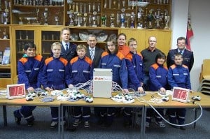 Einen eigens für die Kreisjugendfeuerwehr Lüneburg entwickelten Buzzer konnten jetzt Kreisjugendwart Stefan Schulz und sein Stellvertreter Matthias Knaack in Empfang nehmen.