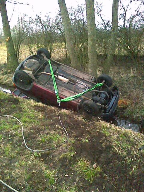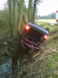 Pkw im Graben; Fahrer bereits aus dem Fahrzeug,