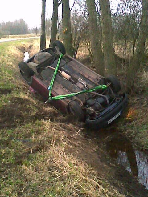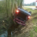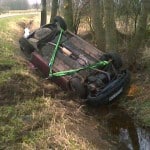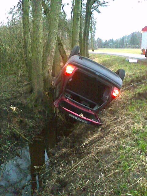 Pkw im Graben, Fahrer unverletzt, kann sich jedoch nicht selbst befreien