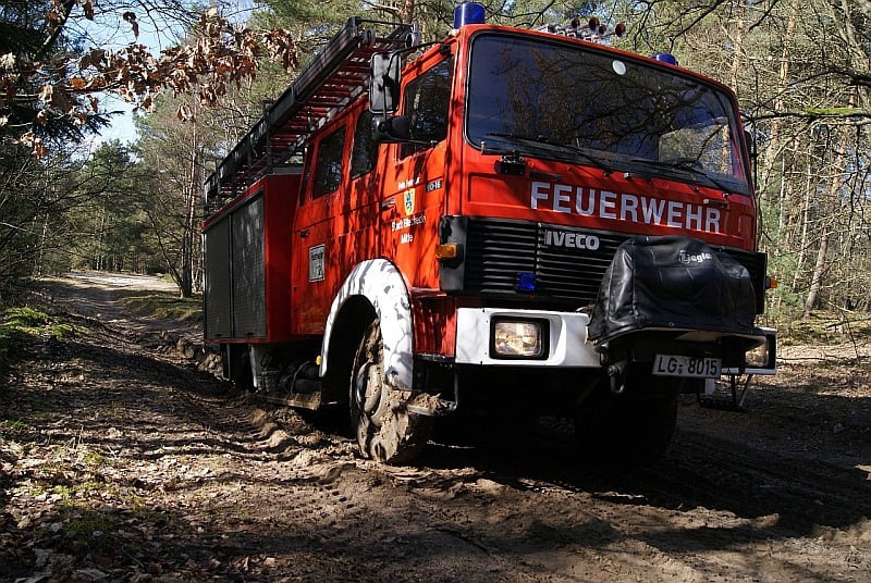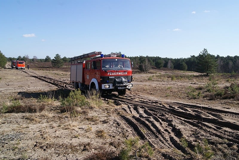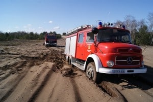 Im losen Sand zeigten sich dann die Grenzen der älteren Fahrzeuge. Ohne Differentialsperre war kein Weiterkommen für das Tanklöschfahrzeug aus Bleckede. Insbesondere das neue Fahrzeug der Feuerwehr Mechtersen hatte keine Probleme mit dem Gelände. Aber zwischen Baujahr 1976 und 2010 darf es auch technische Verbesserungen geben …