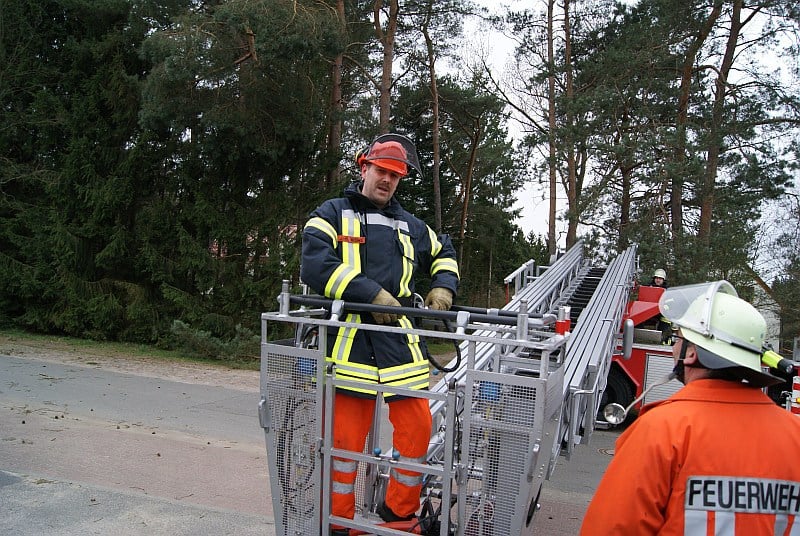 Wenige Minuten später wurde die Feuerwehr Bleckede alarmiert. Im Barskamper Weg gefährdete ein großer Ast in ca. 8 Metern Höhe Autofahrer und Fußgänger.
