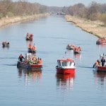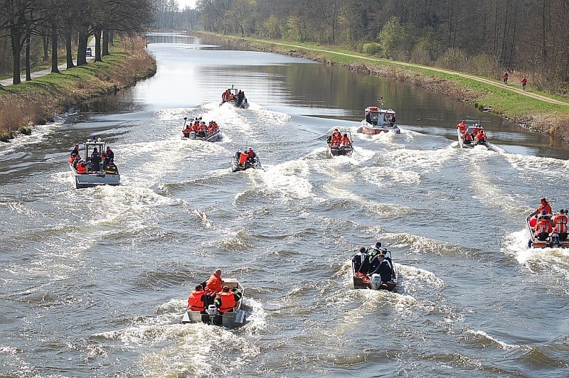 Nach dem gemeinsamen Schleusen in Lauenburg fuhr der Tross bestehend aus 12 Booten den Elbe- Lübeck Kanal bis Dalldorf rauf, wo man sich nach gemeinsamen Grillen für ein Erinnerungsfoto formierte. Gegen Mittag ging es dann wieder heimwärts.