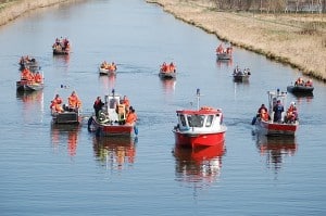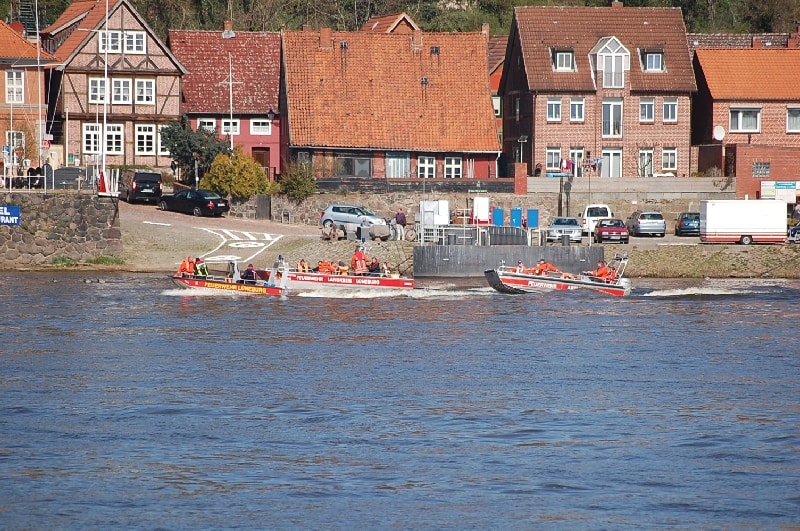 Die Feuerwehren sind zwar auch in Sachen Gewässerschutz mit ihren Booten rund um die Uhr in Bereitschaft, dennoch ist es mittlerweile zur Tradition geworden, sich im Frühjahr des Jahres zum gemeinsamen Anbooten zu Treffen. Rund 80 Kameraden aus drei Bundesländern nahmen an der Übung teil, die sich mittlerweile zum beliebtem Erfahrungsaustausch gemausert hat. Aus dem Landkreis Lüneburg nahmen der Ölabwehrzug Elbe mit den Wehren aus Artlenburg, Bleckede, Breetze, Neuhaus und Walmsburg und der Gewässerschutzzug mit den Wehren aus Barum, Hohnstorf, Kaarßen und Lüneburg sowie die Feuerwehr Bardowick teil.
