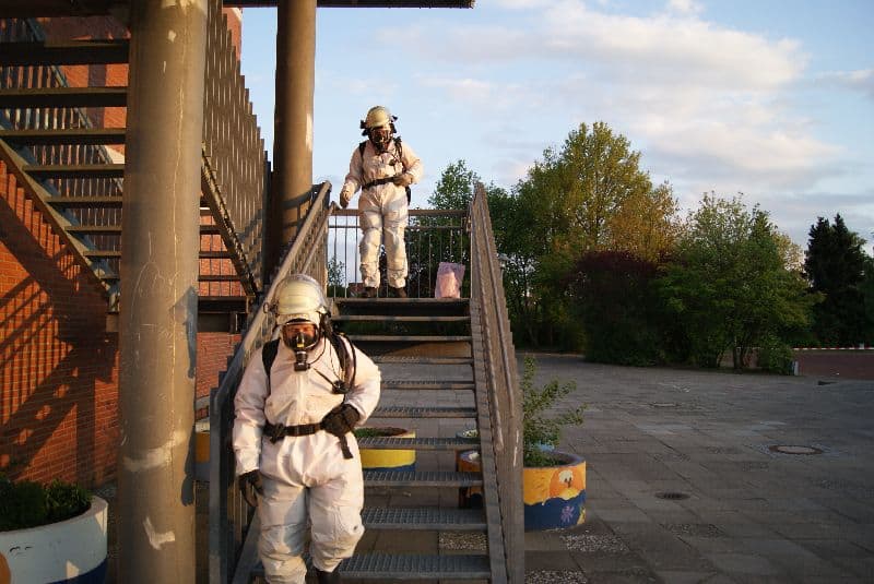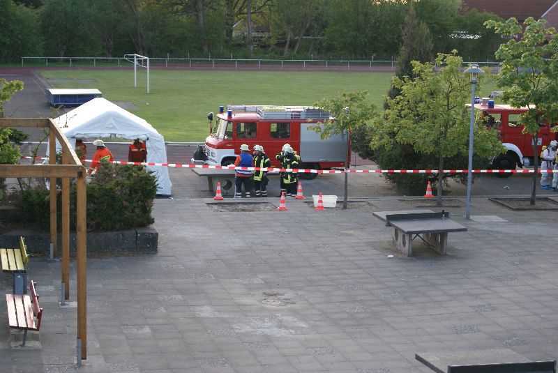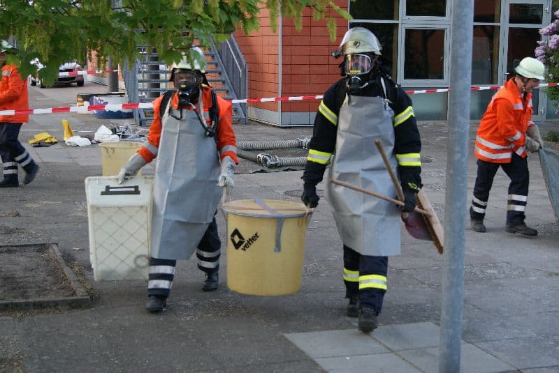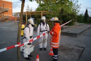 Am letzten Mittwoch führte die Gefahrgutgruppe der Feuerwehr Stadt Bleckede ihren Übungsdienst auf dem Schulhof des Schulzentrums durch.