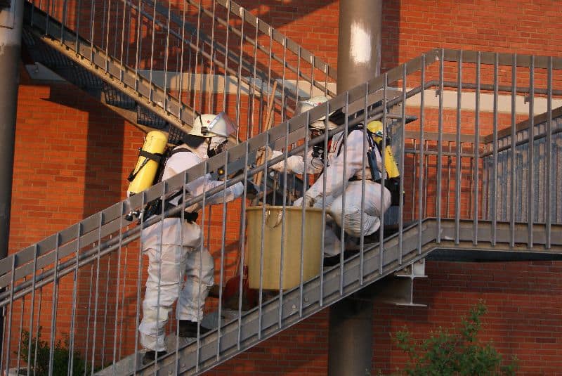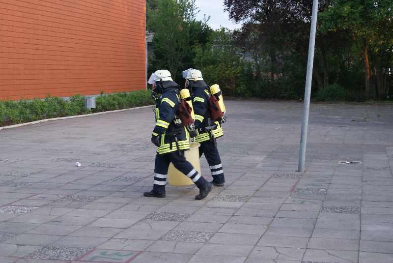 In Schutzkleidung wurde die Eisatzstelle erkundet und der Stoff identifiziert. Es handelte sich um ein giftiges Präperat. Nachdem der Stoff sichergestellt war, überprüften mehrere Atemschutztrupps weitere Teile des Schulgeländes.