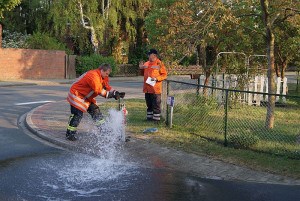 Foto 1: Friedrich-Wilhelm Näfke und Henning Wanke überprüfen den Unterflurhydranten