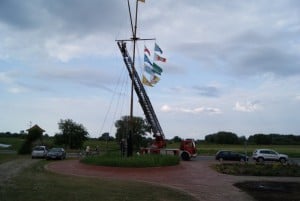 Foto 3: Die Drehleiter der Feuerwehr Bleckede am Fahnenmast