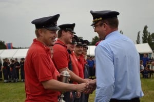 Spannung kam dann bei der Siegerehrung auf. Vor Bekanntgabe der Platzierungen dankte Kreisbrandmeister Torsten Hensel der Gemeindefeuerwehr Amt Neuhaus unter der Leitung von Gemeindebrandmeister Dirk Baumann für die Ausrichtung des Kreisfeuerwehrtages. Weiter betonte er, dass alle Teilnehmer auf ihre Weise Sieger sind und dass das Niveau oder besser die gezeigten Leistungen sich sehen lassen können.