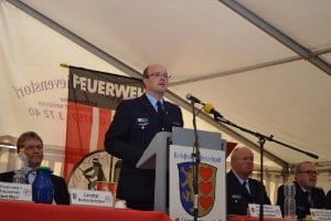 Landrat Manfred Nahrstedt betonte in seinen Grußworten, dass das Engagement der Feuerwehrleute viel Anerkennung verdient. Erst beim Hochwasser Anfang diesen Jahres haben sie wieder ihre unermüdliche Leistungsfähigkeit unter Beweis gestellt. Es ist keine Selbstverständlichkeit seine Freizeit für das Ehrenamt zu opfern. Die Einsätze werden immer mehr, immer schwieriger und es kommen immer mehr Aufgaben dazu. Qualifizierte Leute, die sich einsetzen sind so eine Notwendigkeit.
