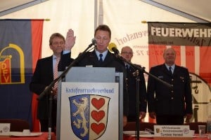 Auf der Versammlung wurde Kreisbrandmeister Torsten Hensel offiziell in seine zweite und der 1. stellvertretende Kreisbrandmeister Henning Banse in seine nunmehr vierte Amtszeit ernannt. Weiter musste man Matthias Kleps aus Altersgründen als 2. stellvertretenden Kreisbrandmeister verabschieden. Seine Nachfolge tritt nun Thorsten Diesterhöft an, welcher auch auf der Delegiertentagung seinen Amtseid leistete.