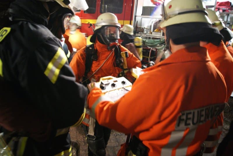 Foto 1: Ausrüsten und Notation der Atemschutzgeräteträger
