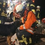 Die gemeinsame Übung war nicht nur für die Einsatzkräfte interessant – Hofhund Bernie war als kritischer Beobachter immer mit dabei.