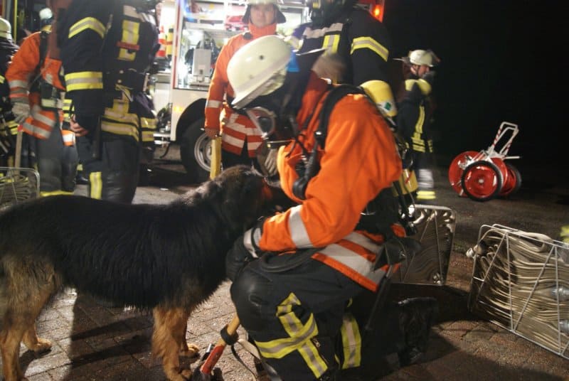 Die gemeinsame Übung war nicht nur für die Einsatzkräfte interessant – Hofhund Bernie war als kritischer Beobachter immer mit dabei.