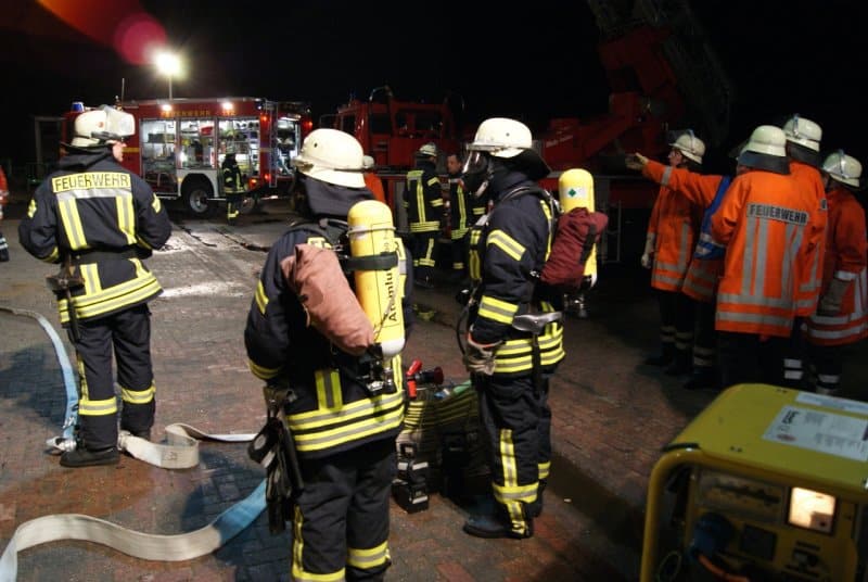 Hier hatte Alexander Müller, Gruppenführer der Feuerwehr Bleckede, ein Übungsszenario für den Löschzug aus Lüneburg und die 1. Gruppe der Feuerwehr Bleckede ausgearbeitet.