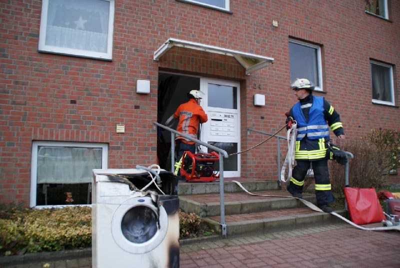 Am Donnerstagnachmittag wurde die Feuerwehr Bleckede zu einem Zimmerbrand „Am Bleckwerk“ gerufen. Das Feuer war in einer Wohnung im zweiten Obergeschoss ausgebrochen. Der Mieter der Wohnung hatte sich bei Löschversuchen an der brennenden Waschmaschine Verletzungen zugezogen. Er wurde nach Betreuung durch die Feuerwehr an den Rettungsdienst übergeben und ins Lüneburger Klinikum gebracht.Die eingesetzten Atemschutzgeräteträger mussten kein Löschwasser mehr benutzen – die Waschmaschine wurde von der Feuerwehr aus der Wohnung getragen. Das Treppenhaus und die Wohnung wurden anschließend gut belüftet.Laut Polizei ist das Feuer durch einen technischen Defekt an der Waschmaschine ausgebrochen. Die Waschmaschine wurde vollständig zerstört, am Gebäude verursachte der Brandrauch weiten Schaden.Die zwölf Einsatzkräfte der Feuerwehr Bleckede konnten nach 45 Minuten wieder einrücken.