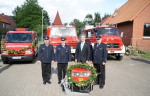 Am Samstag wurde in Barskamp eine neue Tragkraftspritze an die Feuerwehr übergeben. Bürgermeister Jens Böther übergab symbolisch den Schlüssel an den stellvertretenden Stadtbrandmeister Hermann Blanquett welcher ihn an Ortsbrandmeister Detlef Papke weiterreichte. Die neue Tragkraftspritze der Firma Ziegler ersetzt eine knapp 40 Jahre alte Pumpe.