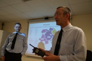 Im praktischen Teil wurden die neuen Funktionen mit Handfunkgeräten ausprobiert. Funken, Rufgruppenwechsel, Notrufe … viele Funktionen sind neu – nur das Sprechen bleibt. Holger Foelske nach dem ersten Ausbildungsblock: „Wir haben jetzt ca. ein Drittel der erforderlichen Feuerwehrkameraden geschult. Nach der Sommerpause wird die Ausbildung für weitere 150 Einsatzkräfte fortgesetzt.“