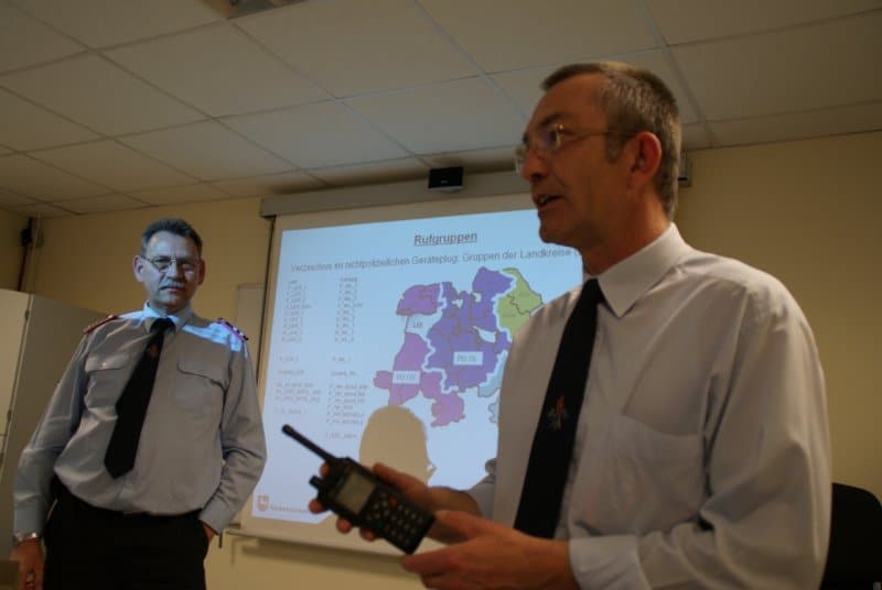 Der theoretische Teil umfasste die neuen Netzstrukturen – es ist kein Funken wie bisher sondern eher „Handytelefonieren in Gruppen“. Die Netzinfrastruktur ist mit Mobiltelefonnetzen vergleichbar – somit müssen sich die Feuerwehren auf neue Technik, neue Bedienung und neue Bezeichnungen einstellen.