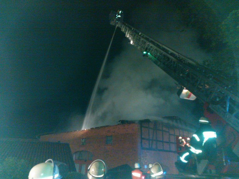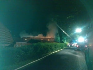 Zu einem Vollbrand einer als Lagerhalle genutzten Scheune auf dem Gelände einer heilpädagogischen Einrichtung kam es in der Nacht zum 05.06.12 in Neestahl. Nach derzeitigen Ermittlungen war es gegen 00:30 Uhr zu dem Feuer in der Scheune gekommen. Mitarbeiter der Einrichtung bemerkten das Feuer und alarmierten die Feuerwehr. Parallele Löschversuche schlugen fehl. Insgesamt 120 Einsatzkräfte von 13 Ortswehren löschten in der Folge den Brand, konnten jedoch ein Herunterbrennen des Gebäudes nicht verhindern. In Inneren befand sich u.a. eine Kerzenwerkstatt. Es entstand ein Sachschaden von gut 300.000 Euro. Verletzt wurde glücklicherweise niemand.