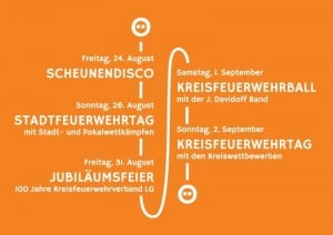 Die Wettbewerbe, Delegiertenversammlung und Jubiläumsfeier werden durch eine Disco und den öffentlichen Kreisfeuerwehrball ergänzt.