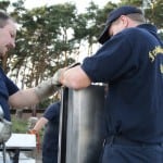 Stadtbrandmeister Banse ist überrascht wie schnell und einfach die Wand errichtet wurde: „Mit dieser Mannschaft steht die Hochwasserschutzanlage innerhalb einer Stunde.“