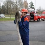 Foto 3: Vor der Fahrzeughalle mussten Schläuche gerollt werden